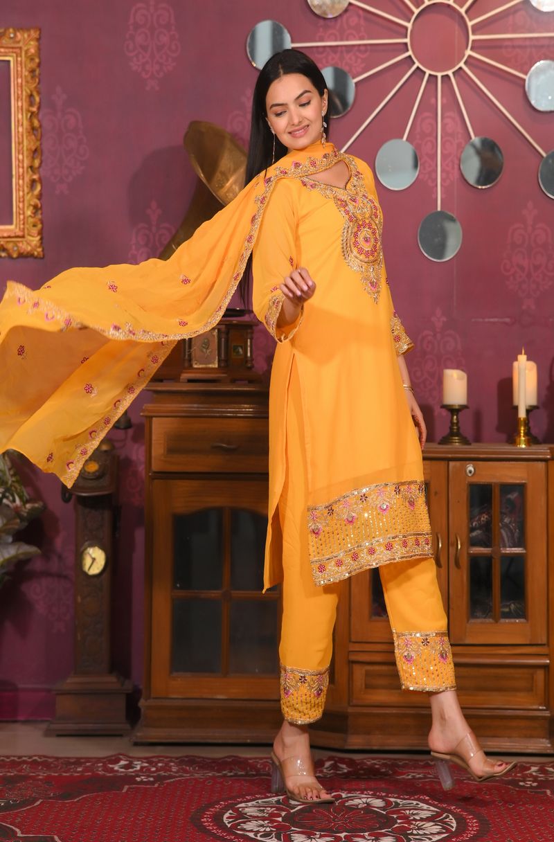 Organza Silk Kurta Dupatta Set With Embroidery Work | Ready To WearOrganza Silk Kurta Dupatta Set With Embroidery Work | Ready To Wear
