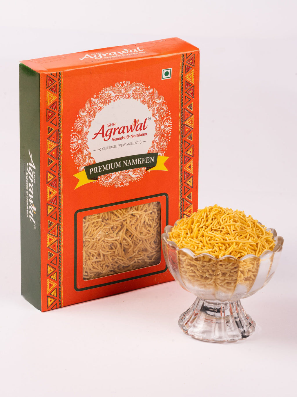 Shri Agrawal Sweets & Namkeen Barik Sev – 500 gms of thin, crispy sev made with premium ingredients. Perfect for chaats, snacks, or enjoying as a crunchy treat.