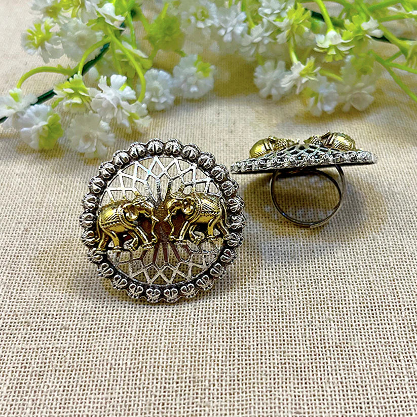 Perfect for festivals, Navratri, weddings, or everyday traditional wear, this statement ring adds a graceful touch to your ensemble—whether worn solo or paired with other oxidized pieces.