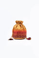 Embrace the charm of Aari Embroidery on soft Mashru fabric with our stylish Round Potli Bag in rich Mustard color, featuring an attached drawstring for added convenience.