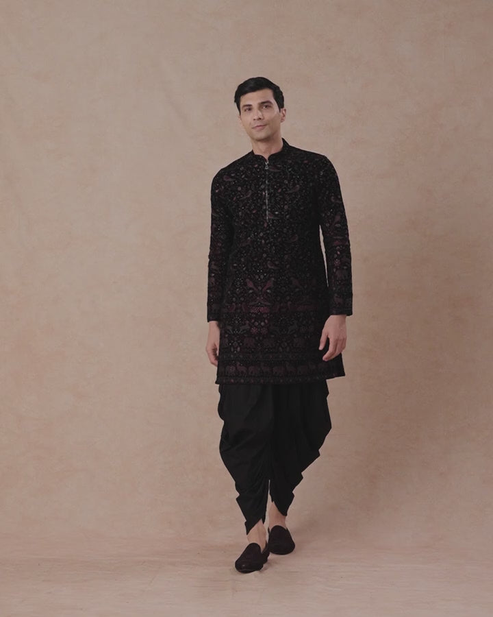 A perfect addition to your occasion wear wardrobe, this velvet kurta patiala set is designed for men who appreciate rich fabrics and regal elegance.