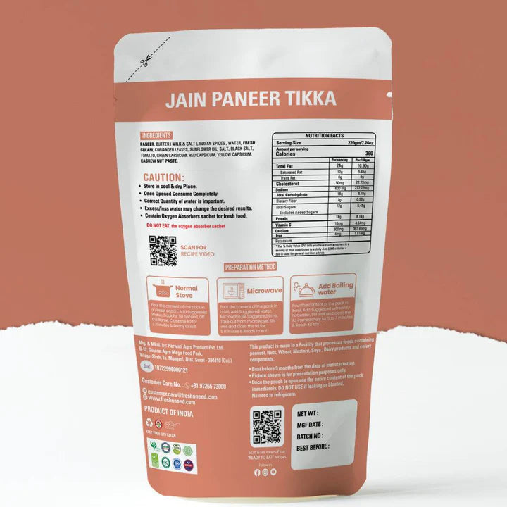 Introducing Freshoneed's Ready-to-Eat Paneer Tikka (Without Onion & Garlic) – Your Instant Culinary Delight!