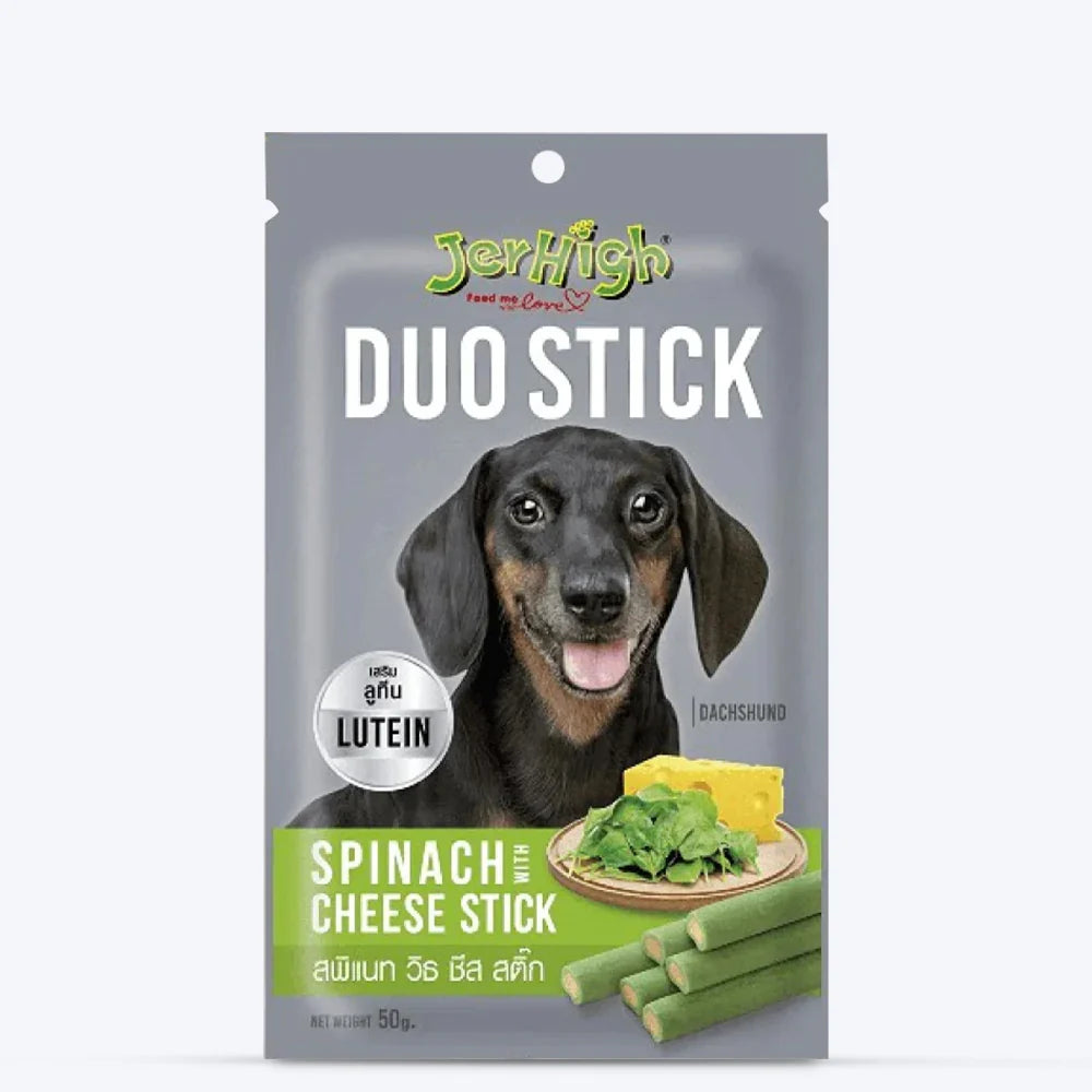 JerHigh Duo Stick Dog Treat - Spinach with Cheese Stick - 50 gms