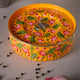 Spices are the heart of Indian cooking—vibrant, fragrant, and full of flavour. They deserve a special place in your kitchen. This hand-painted masala daani is crafted from enameled stainless steel and is as functional as it is beautiful. Inspired by the serene charm of a lotus pond, it features delicate motifs of blooming lotuses, buds, and stylized leaves on a rich turmeric yellow base—each stroke painted by master artisans.
