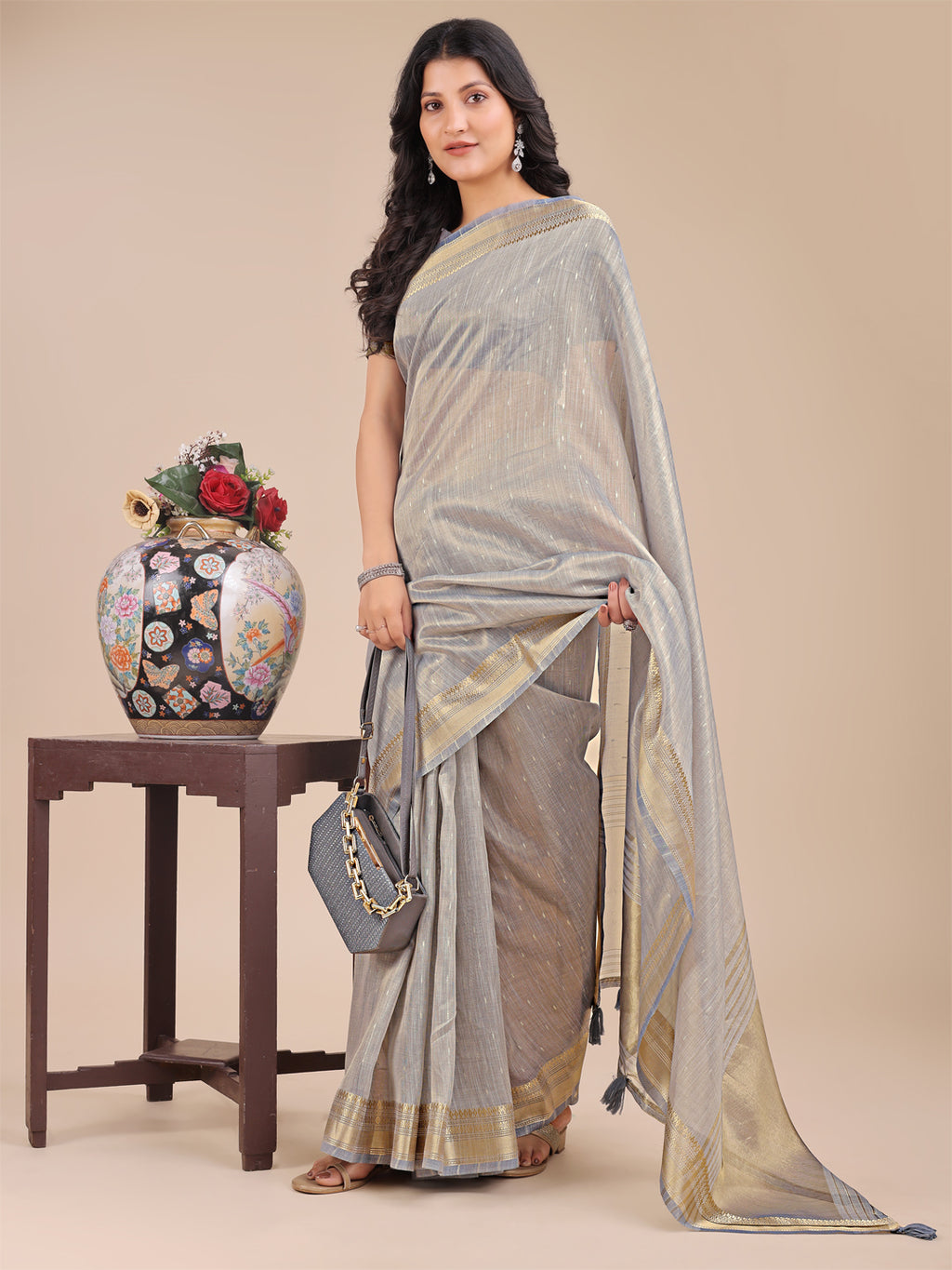 Saree Color :- Yellow , Peach , Light Pink , Grey , Sea Green , Cream