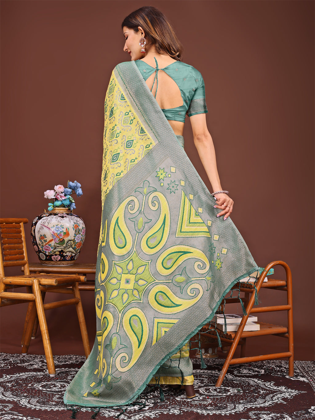 Mogra Mist Linen Cotton Saree | Yellow Color | Ready To Wear SKU- ASKRI1005