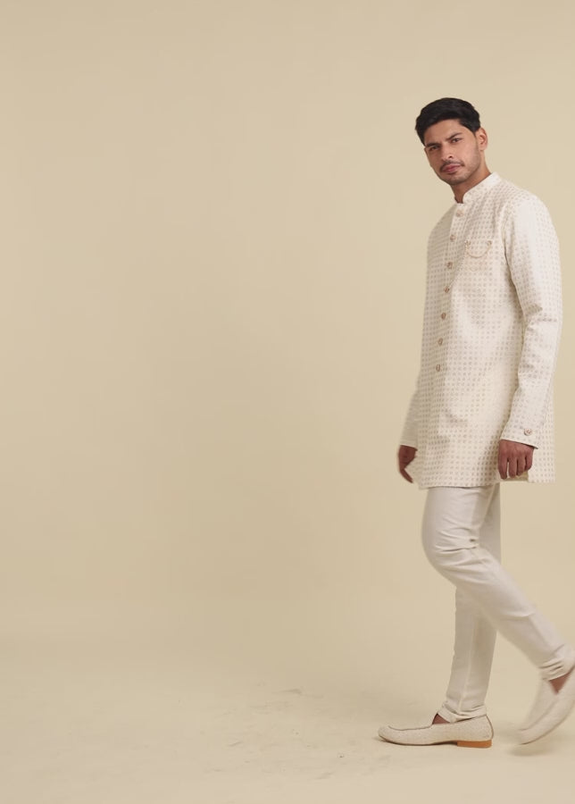 Manyavar Cream Buta Jaal Patterned Kurta Set | Ready To Wear