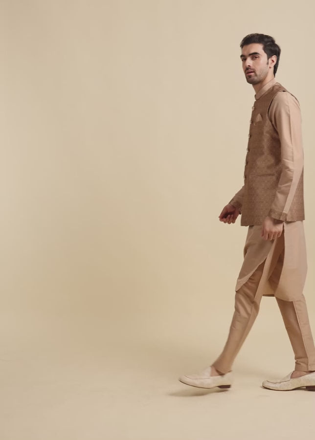 Fawn Brocade Kurta Jacket Set – Elegant Wedding & Festive Wear for Men