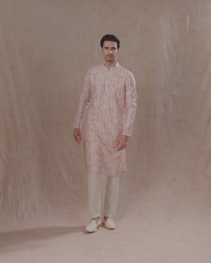 Manyavar Peachy Elegance Kurta Pajama | Ready To Wear