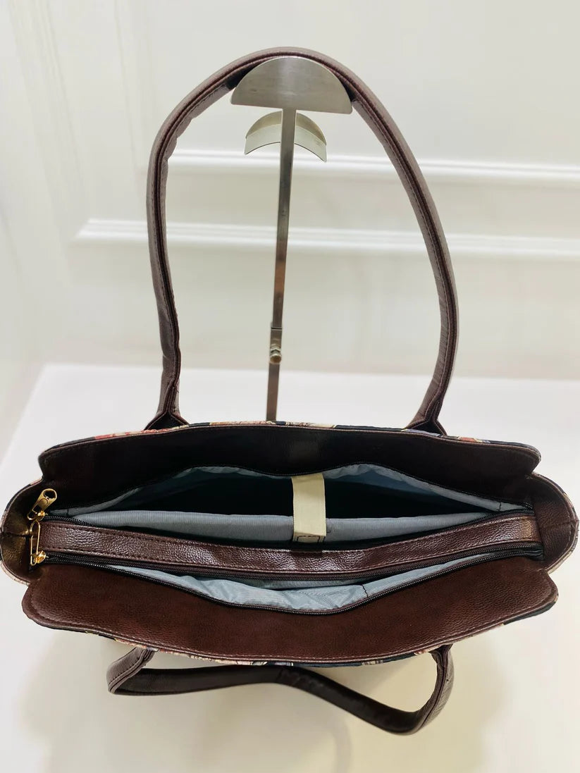 Black Floral Morvi Laptop Bag With Phone Pouch