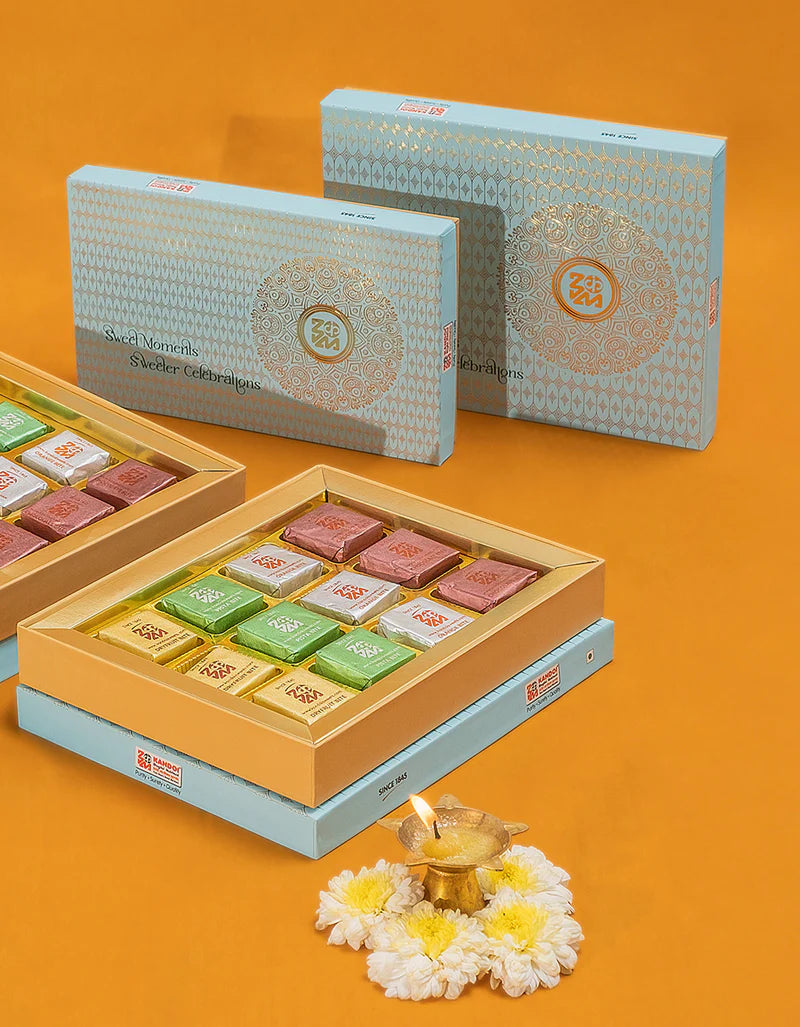 The Kandoi Bhogilal Mulchand Assorted Bites Box features 24 expertly crafted pieces, showcasing a variety of traditional Indian sweets. Each bite offers a unique blend of flavors and textures, made from premium ingredients to ensure authenticity and quality. This assortment is ideal for sharing during festive occasions or as a refined gift that highlights the rich heritage of Indian confectionery.