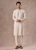 The soft grey tone adds a modern, versatile appeal, while subtle thread embroidery and delicate sequins/shimmer accents elevate the minimal design. Ideal for festive occasions, cultural gatherings, poojas, and family functions, this kurta pajama set is a timeless wardrobe essential that blends comfort with elegance.