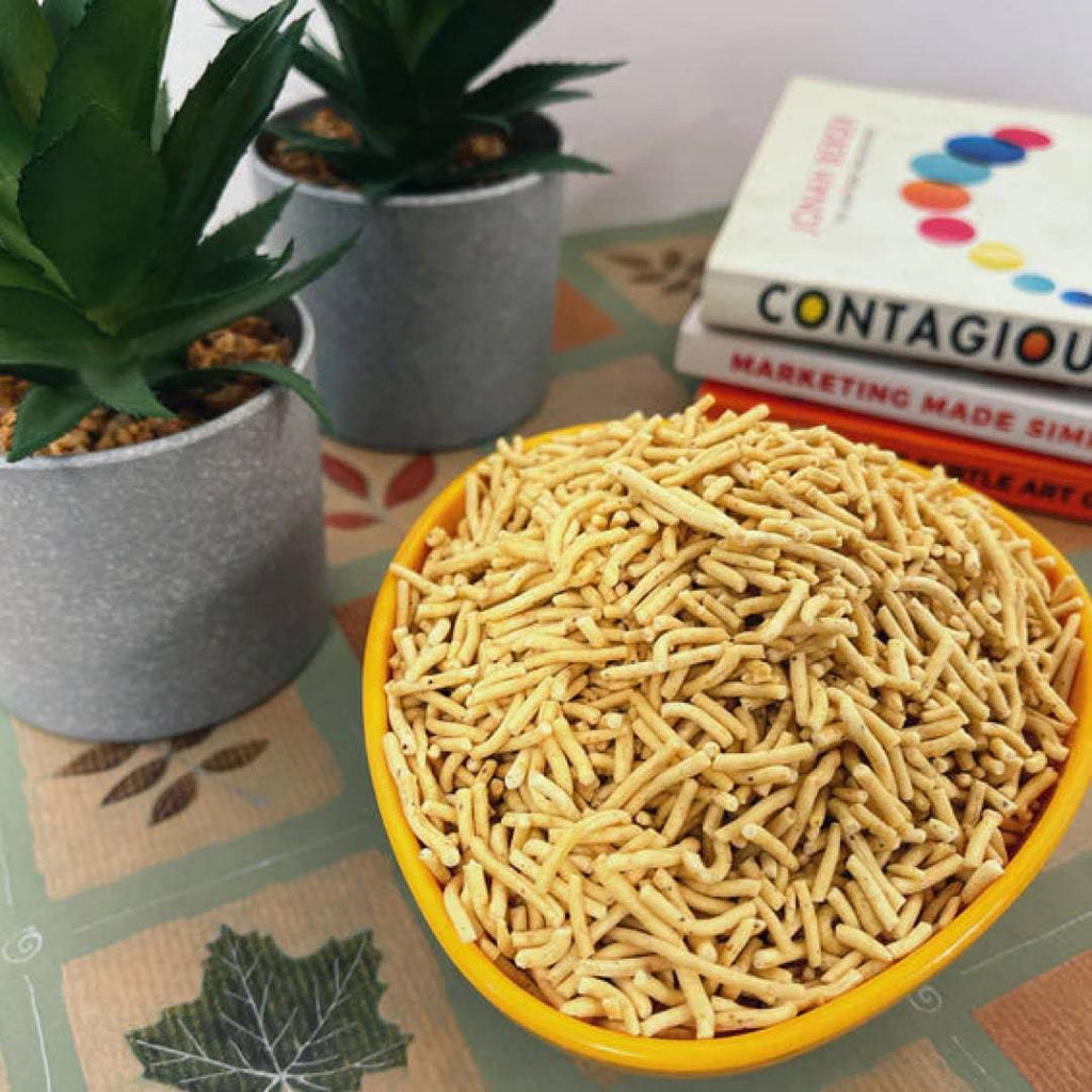 Experience the crunchy and flavorful delight of Falguni Gruh Udyog Ujjaini Sev, a traditional Indian snack that embodies the rich culinary heritage of Ahmedabad, Gujarat. These sev are meticulously crafted to perfection, offering a delightful combination of crispness and the traditional taste of Ujjaini sev.