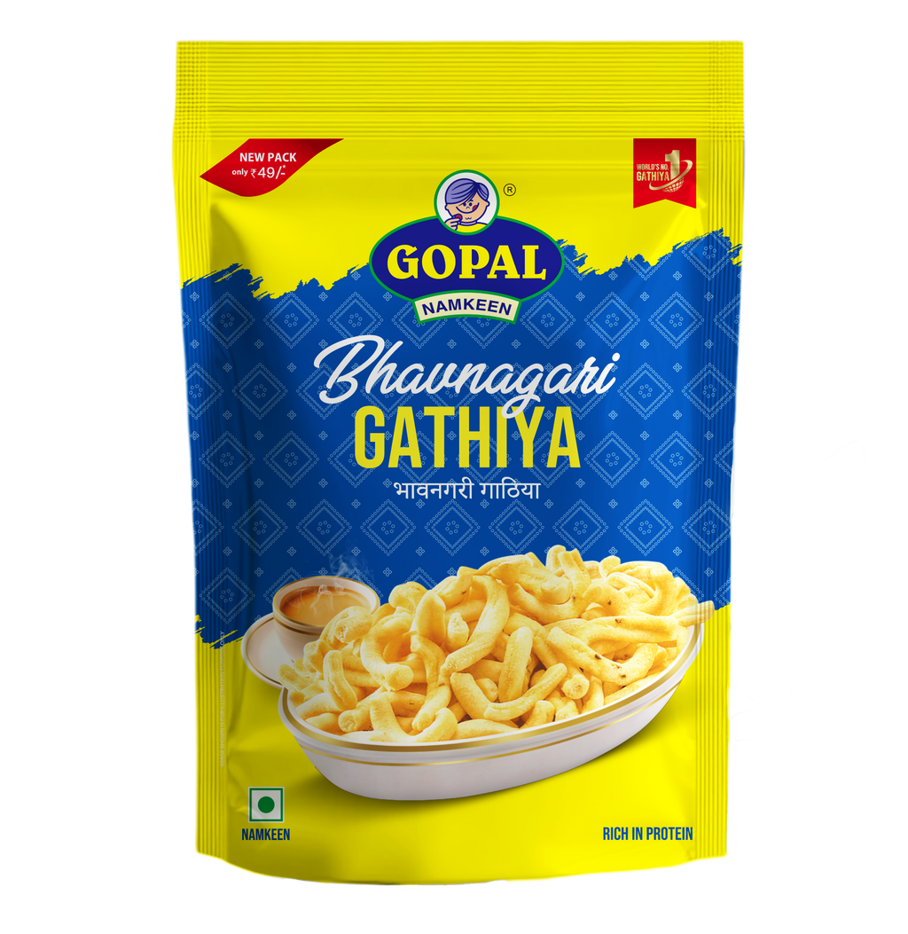 Gopal Namkeen Bhavnagari Gathiya is a popular Gujarati savory snack known for its soft, melt-in-the-mouth texture and mild, balanced spices. Made using high-quality gram flour and traditional recipes from Bhavnagar, this gathiya delivers authentic taste with every bite. Perfect for breakfast, tea-time, or as a light snack, it pairs beautifully with green chutney or fried chilies, making it a timeless favorite across all age groups.