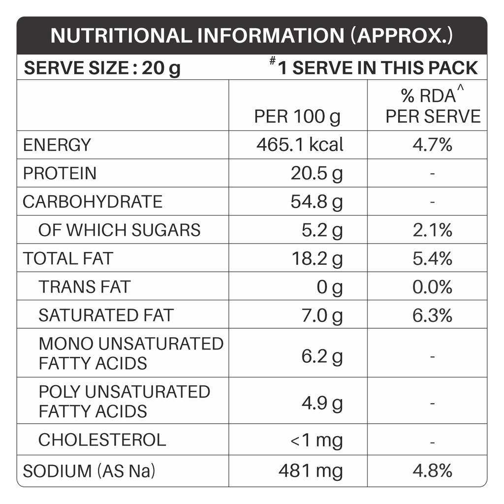 May contain peanuts, tree nuts, sesame seeds, soya, milk, wheat, and gluten.