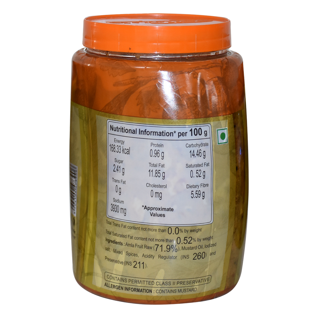 Patanjali amla pickle comprises raw amla fruit, edible common salt, mustard oil, and a blend of assorted spices. Each piece of Amla is infused with a harmonious blend of aromatic spices, enhancing its inherent taste and creating a symphony of flavors.