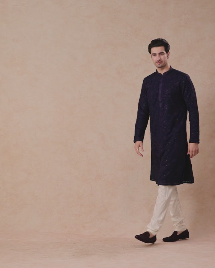This kurta pajama set includes a matching kurta and churidar, offering a comfortable yet elegant fit that allows you to move with ease during long celebrations. Its minimalist charm and premium fabric make it an ideal choice for men who appreciate classic style with subtle detailing.