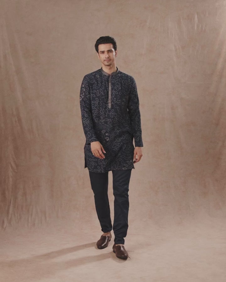 The kurta features a rich dark blue hue enhanced with metallic gold print, adding a touch of opulence to your ethnic attire. Paired with a classic Patiala, this set is perfect for weddings, festive celebrations, cultural events, and traditional ceremonies. Complete the look with mojaris or ethnic footwear for a polished and regal appearance.