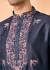 The kurta is detailed with subtle thread embroidery, adding a touch of craftsmanship while maintaining a clean, elegant look. Paired with comfortable matching pants, this kurta pajama set is ideal for festive celebrations, evening soirees, weddings, and cultural events. Its rich dark blue hue and classic silhouette make it a versatile addition to any ethnic wardrobe.