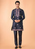 Manyavar Vibrant Dark Blue Satin Kurta Pajama | Ready To Wear