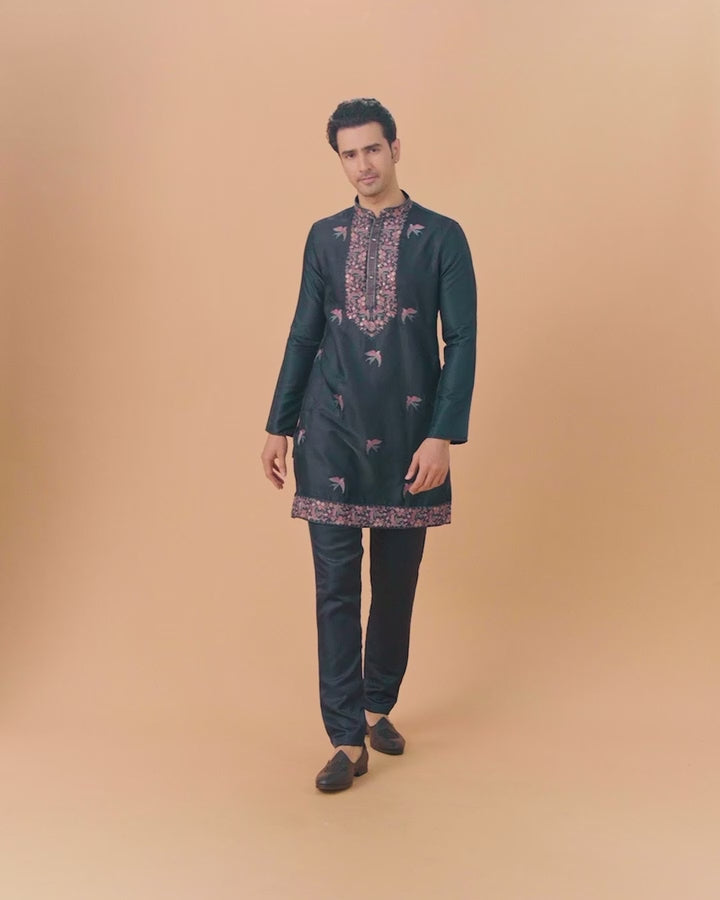Style Tip: Complete the look with black or navy mojaris and a sleek wristwatch for an elegant festive finish.