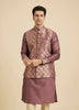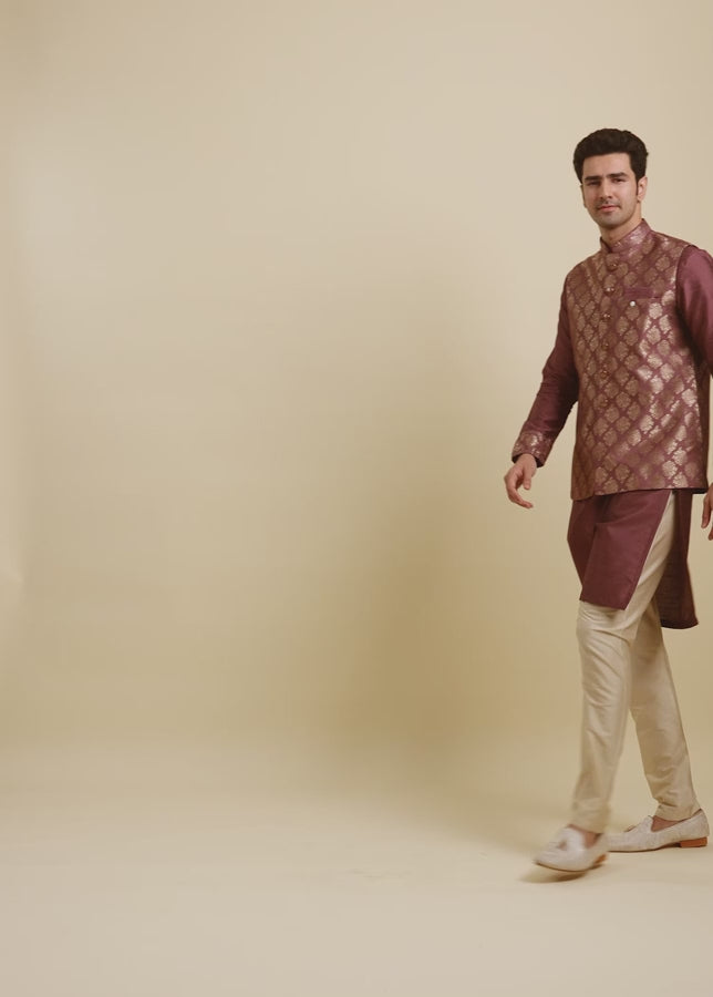 Step into grandeur with this dark purple jaal kurta jacket set for men, where regal tradition meets modern elegance.