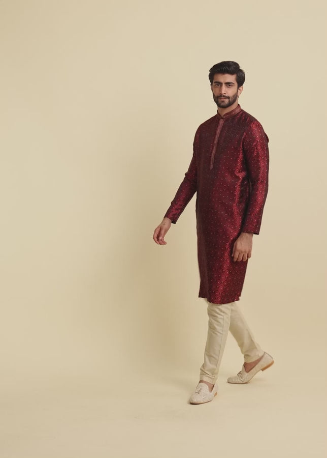 Maroon Jaal Medallion Kurta Pajama Set in Premium Brocade