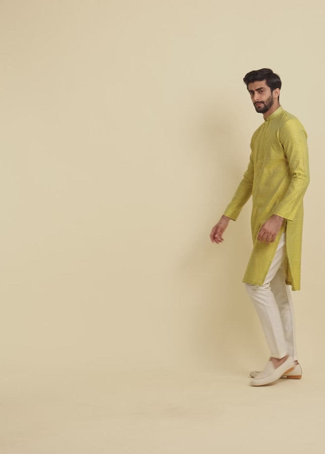The rich mehndi green hue adds an earthy charm, making this ensemble ideal for weddings, festive celebrations, cultural events, and special occasions. Designed to offer both comfort and sophistication, this kurta pajama set pairs effortlessly with polished leather shoes and a slim-fit jacket for a modern ethnic look.