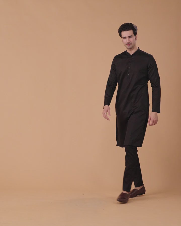 Opulent Black Kurta Pajama Set in Premium Cotton