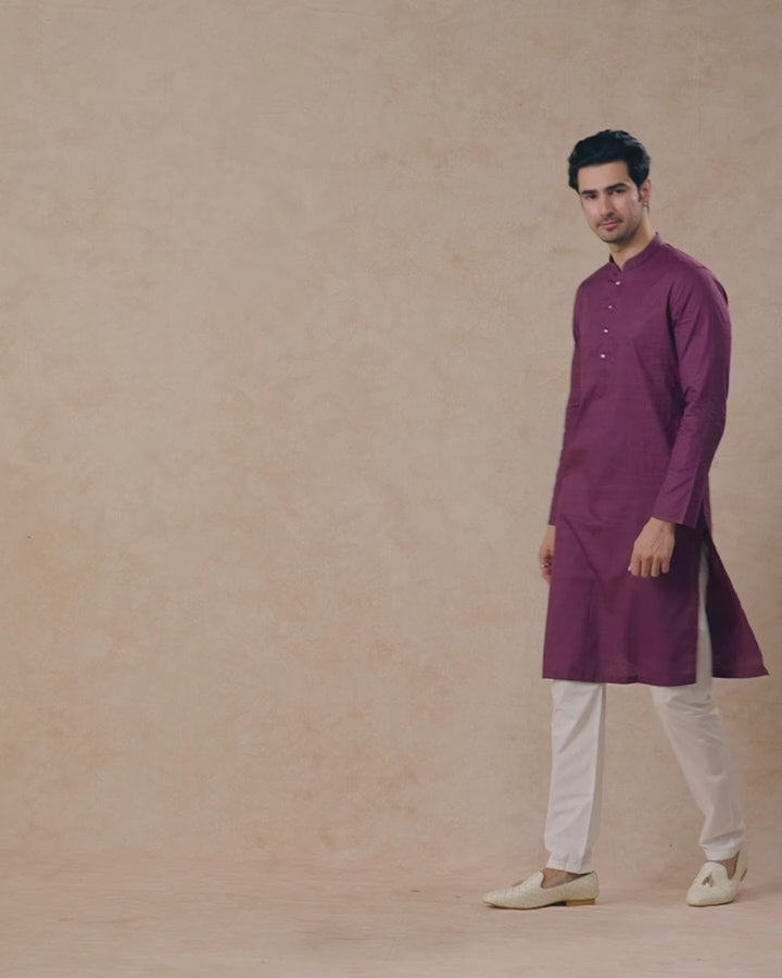 Royal Purple Charm Kurta Pajama Set in Premium Cotton