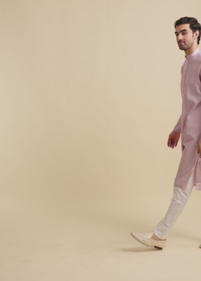 Embrace timeless sophistication with this Soft Lilac Kurta Pajama Set, designed for men who appreciate understated elegance. Crafted from premium art silk, this ensemble offers a smooth texture and graceful drape, ensuring both comfort and style. The kurta features a subtle buta diamond pattern, adding depth and refined charm without overpowering the look.